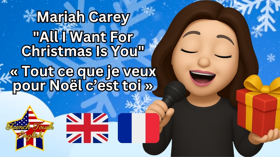 Voici en vidéo ma traduction interlinéaire (c’est-à-dire ligne par ligne) des paroles de “All I Want For Christmas I You” de la chanteuse américaine Mariah Carey.